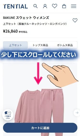 まずは、BAKUNE スウェット ウィメンズのページを開きます。