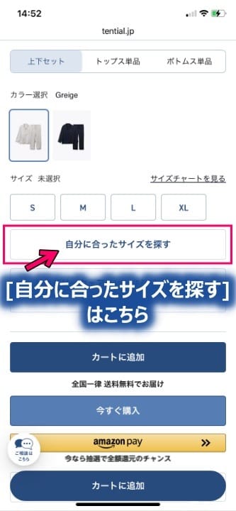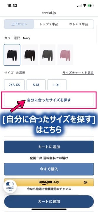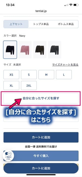 「自分に合ったサイズを探す」機能があるところ↓