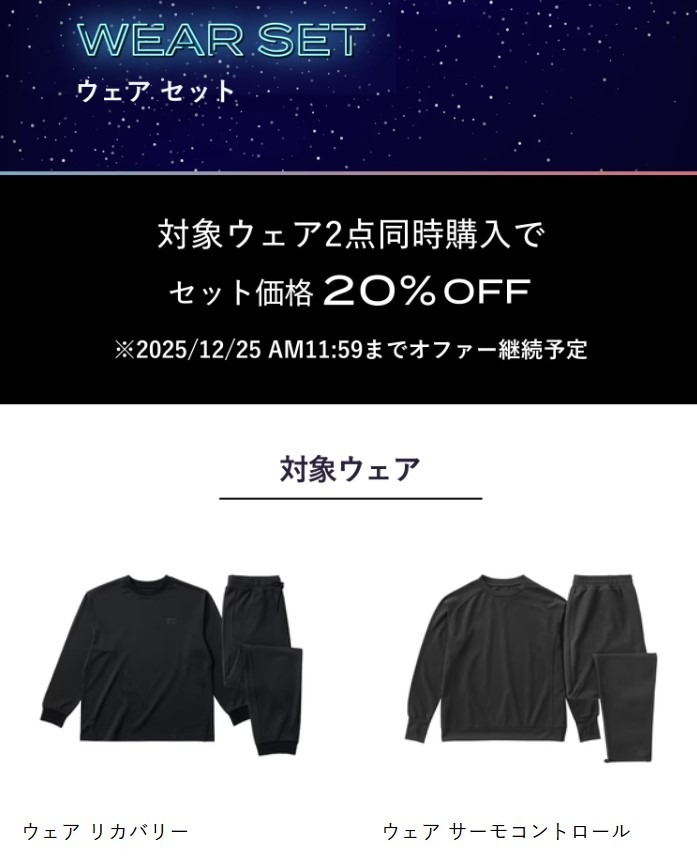 ブレインスリープ ウェア サーモコントロール以外の、ブレインスリープのスリープウェアもレギュラーオファーの特典の対象になっています。