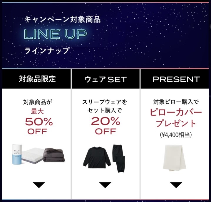 他にもたくさんのブレインスリープの商品がお安くなっております。ぜひブラックフライデーの公式特設ページをチェックしてみてください!↓