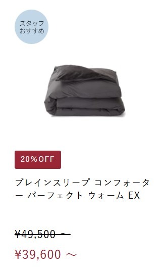 ブレインスリープ コンフォーター パーフェクト ウォーム EXが、単品購入で20%OFFになっています。