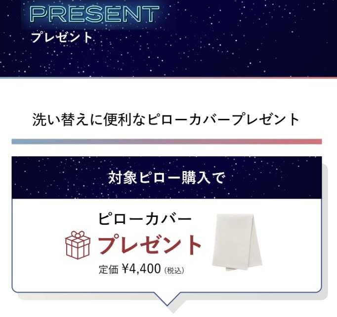 セール対象のピローを購入すると、洗い替えに便利なピローカバーがプレゼントされます。