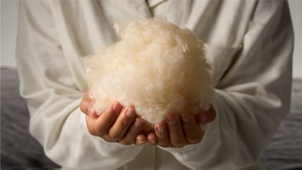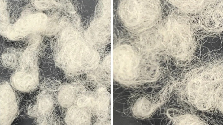 カーボナノダウンの粒わたの粒は一つ一つが大きく、繊維が絡み合う構造になっているため、暖かな空気を溜め込みやすく、高い保温性が期待できます。