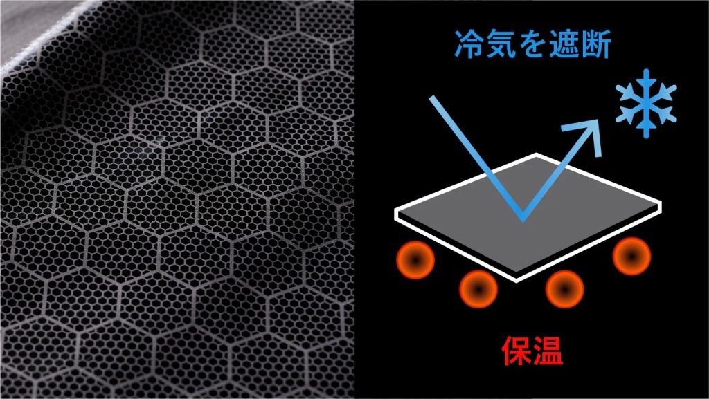 高い保温性が期待できる独自開発の粒わた「カーボナノダウン」を中わたに採用