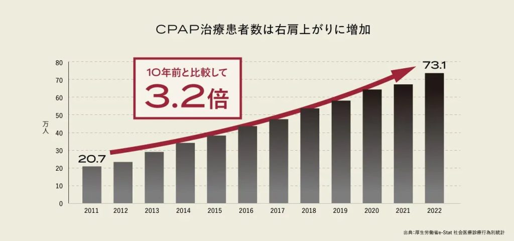 日本では、睡眠時無呼吸症候群の潜在患者は約2,200万人、そのうち治療が必要な人は約940万人と推定されています。