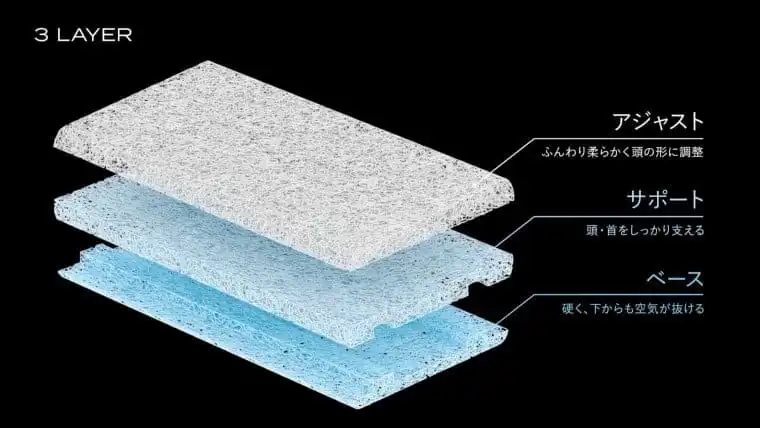 この2つの層が、しっかり頭と首を支えので、寝ている間に首と肩の筋肉を休める事ができます。