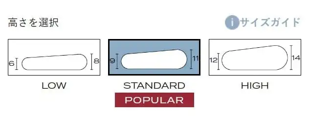 - 165㎝以下の女性 → おすすめサイズは、LOW か STANDARD