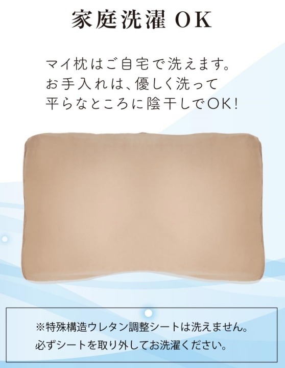 枕の1層目の特殊構造ウレタン調整シート(my楽寝ウレタン部分)は洗えません。