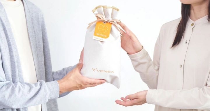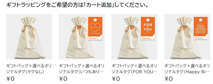 また、VENEX公式オンラインストアおよび直営店では、購入した商品に無料でギフトラッピング(ギフトバッグ)を付けることができます。